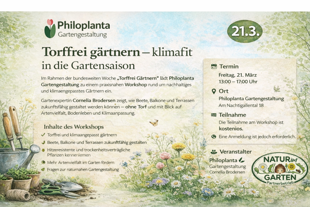 Workshop: Torffrei und nachhaltig gärtnern – Freitag, 21. März 2026Von Cornelia Brodersen / 14. März 2026